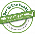 Mit diesem Logo möchten wir zeigen, dass wir Kunde beim Grünen Punkt sind, und damit unseren Pflichten zur Systembeteiligung nach dem Verpackungsgesetz nachkommen wollen.